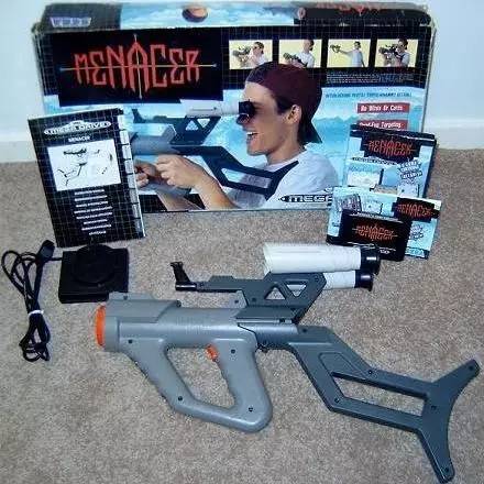 另一边不服输的世嘉为MD配备了一个比冲天炮还霸气的外设“Menacer”,还加装了双目瞄准镜: