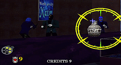 《VR特警》就是下图这个,二代在PC平台成了很多玩家用来熟悉鼠标的第一款游戏。